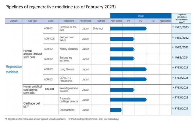 下图为截至2023年2月的再生医疗在研产品管线: