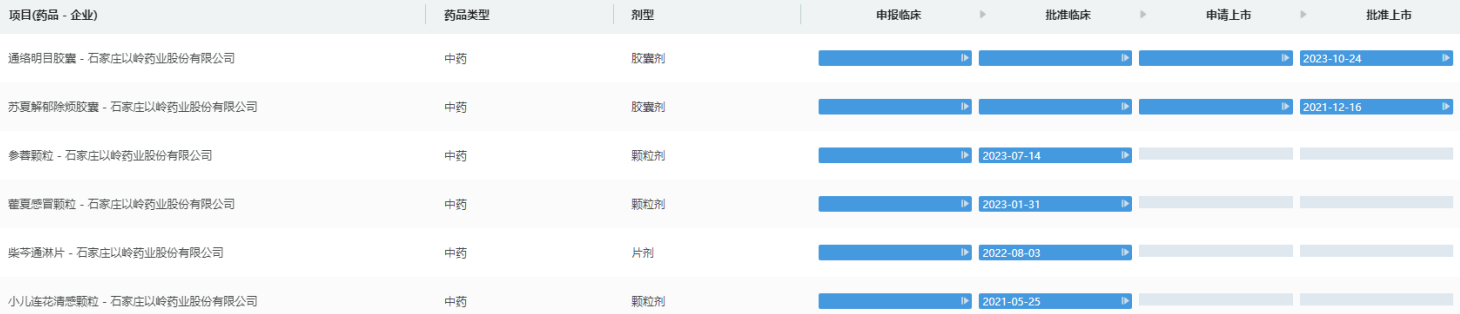 以岭药业项目进度查询(部分)