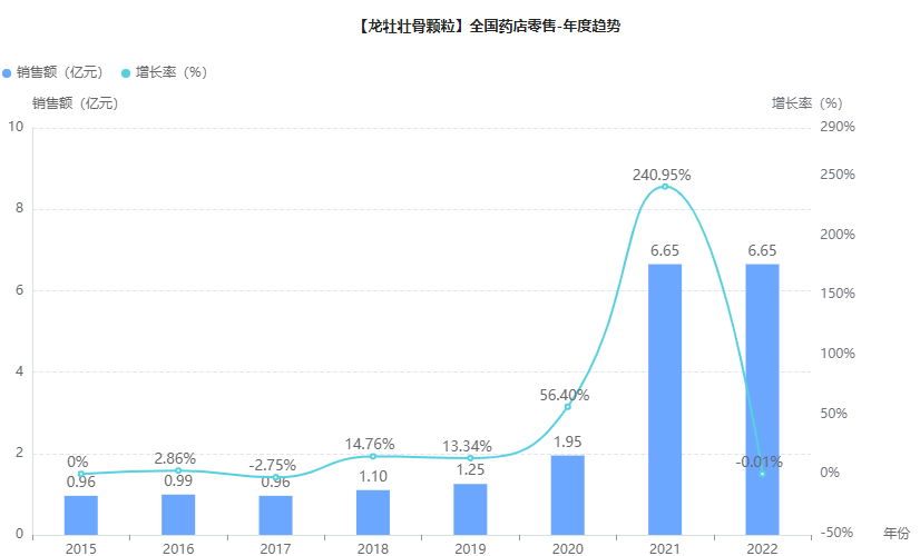 龙牡壮骨颗粒全国药店零售销售趋势