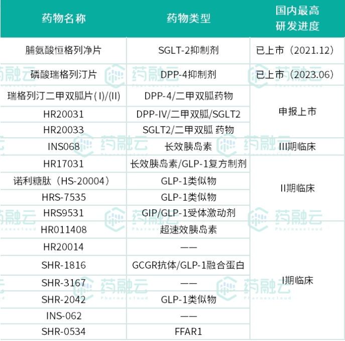 恒瑞主要糖尿病1类新药