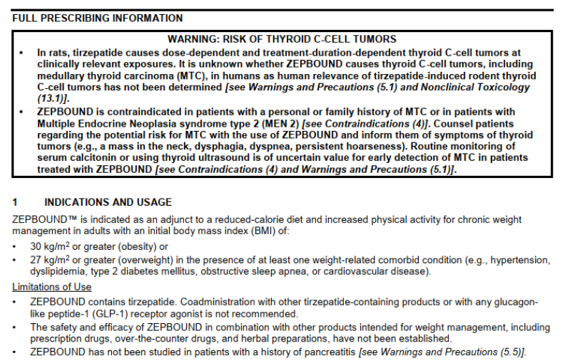 2023年11月,Tirzepatide获美国FDA批准用于BMI 30 及以上的肥胖症或者BMI 27 及以上且患有至少一种与体重相关的慢性病如高血压、2 型糖尿病或高胆固醇的超重人群的减肥治疗。商品名Zepbound。