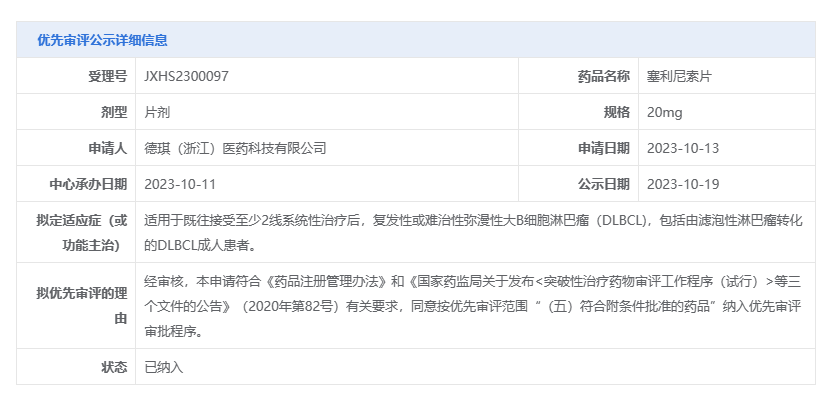 塞利尼索由Karyopharm Therapeutics公司研发,德琪药业通过引进的方式获得其中国地区的商业化权益。是全球首个全新机制的口服选择性核输出蛋白(XPO1)抑制剂,具有“全新机制、协同增效、快速起效、深度缓解”四大特点。通过抑制核输出蛋白XPO1,塞利尼索可促使肿瘤抑制蛋白和其他生长调节蛋白的核内储留和活化,并下调细胞浆内多种致癌蛋白水平。
