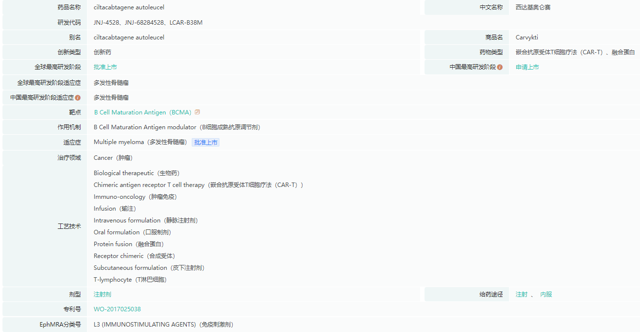 Carvykti药物基本信息