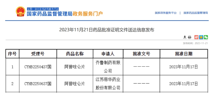 近日,据NMPA官网公示,齐鲁制药和江苏恩华药业提交的阿普唑仑片化药同日通过一致性评价。据药融云数据统计,阿普唑仑在2022年全国院内销售(化学和生物药)抗焦虑药市场,为TOP5品种,市场份额近10% 。此外,该品种目前多家企业布局,超50家企业获批。