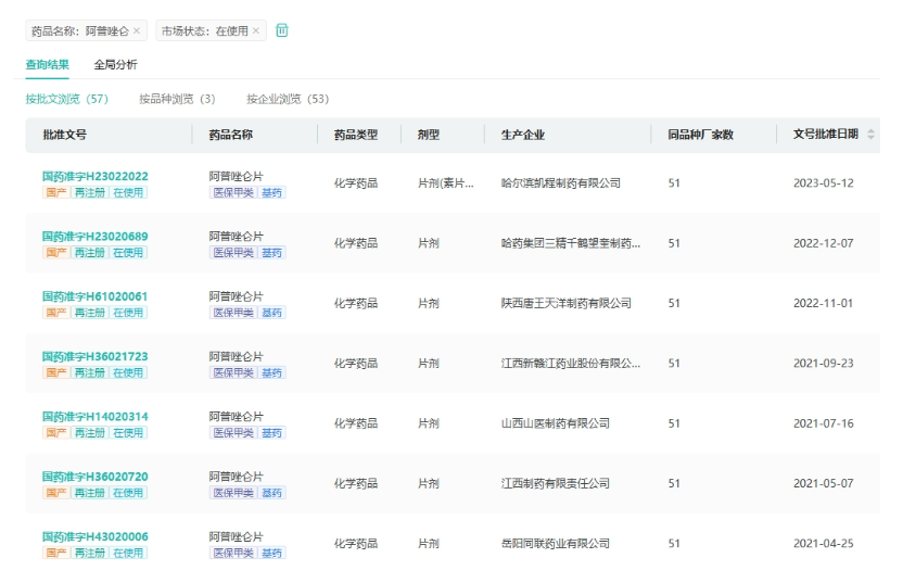 要解锁更多企业药品研发信息吗?查询药融云数据库(vip.pharnexcloud.com/?zmt-mhwz)掌握药品各国上市情况、药品批文信息、销售情况与各维度分析、市场竞争格局、一致性评价情况、集采中标情况、药企申报审批信息、最新动态与前景等,以及帮助企业抉择可否投入时提供数据参考!注册立享15天免费试用!