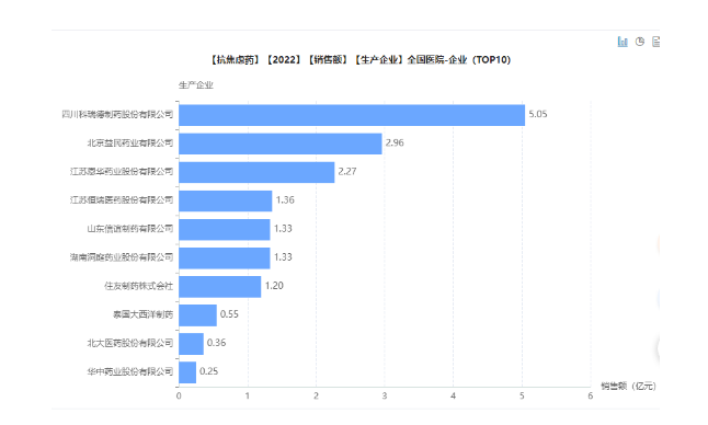 从企业来看,四川科瑞德制药在抗焦虑药市场中位列第一,而北京益民药业和江苏恩华药业紧随其后,跻身第二和第三名。此外,江苏恒瑞医药、山东信谊制药、湖南洞庭制药、佳友制药等7家企业也成功进入市场前十名。