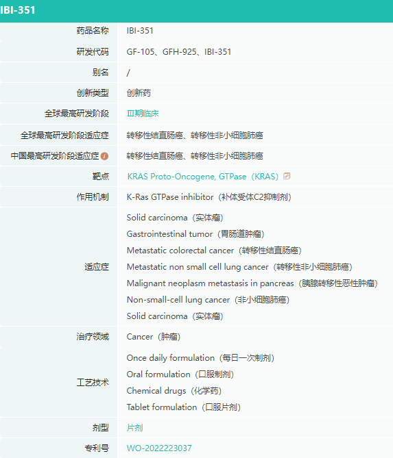 GFH925是国内首个递交NDA获受理、并纳入优先审评程序的KRAS G12C抑制剂;并已获两项CDE突破性疗法认定,分别用于治疗至少接受过一种系统性治疗的KRAS G12C突变型晚期NSCLC患者、至少接受过两种系统性治疗的KRAS G12C突变型晚期结直肠癌(CRC)患者。