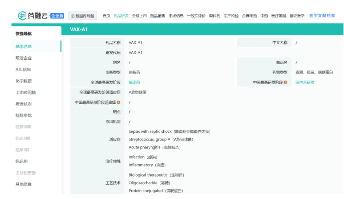 药融云数据监测显示:VAX-A1是一种在研的新型结合疫苗,旨在预防由A组链球菌(GAS,又称化脓性链球菌)引起的疾病。A组链球菌在全球普遍存在,是人类细菌感染中最重要的病原之一,每年导致7亿例疾病,包括咽炎或链球菌性咽喉炎,以及某些严重的侵袭性感染,如败血症、坏死性筋膜炎和中毒性休克综合征,也是年幼患者使用抗生素的一个重要原因。目前全球尚未有针对A组链球菌的疫苗获批。VAX-A1已在2021年下半年进入IND-enabling研究阶段。该项目受到了CARB-X(由盖茨基金会、惠康基金会和美国生物防御局组成的机构)的资助,迄今已收到660万美元,潜在资金总额高达1460万美元,包括赠款。