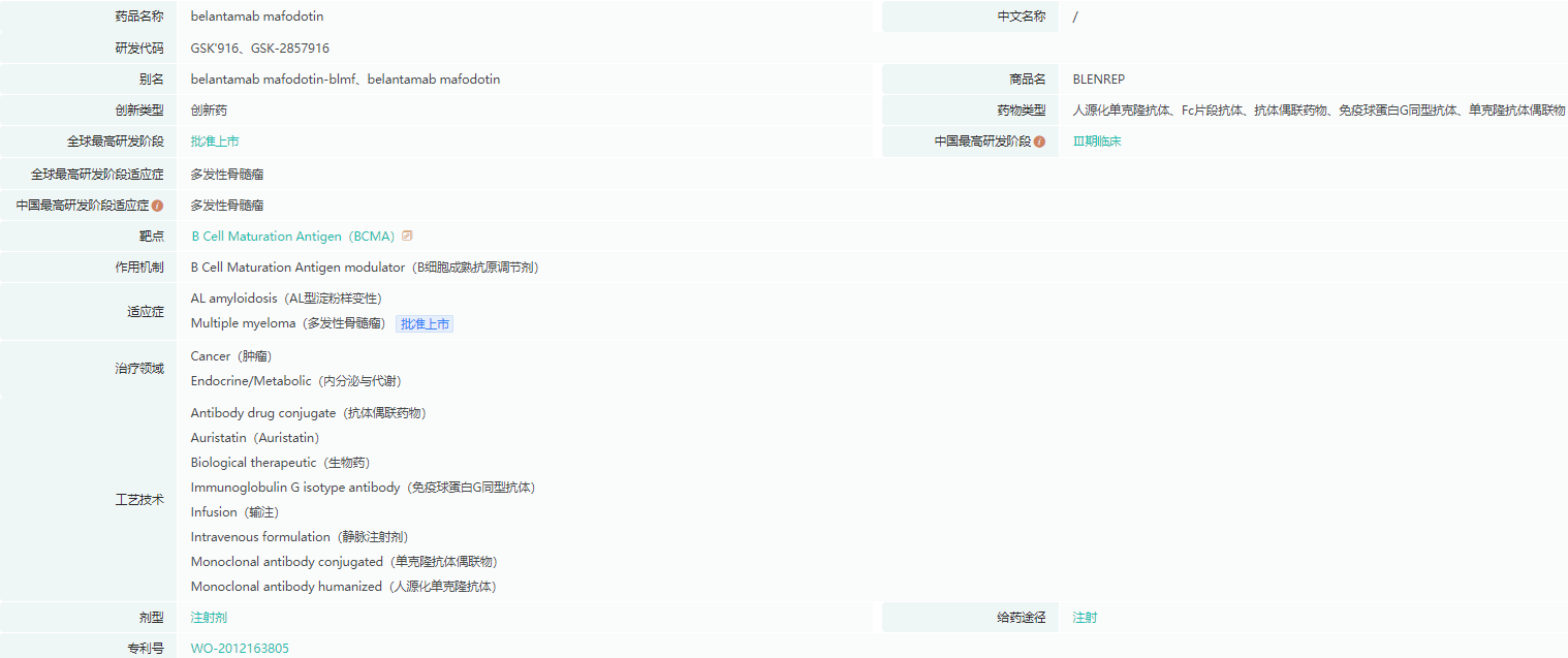 belantamab mafodotin药物基本信息
