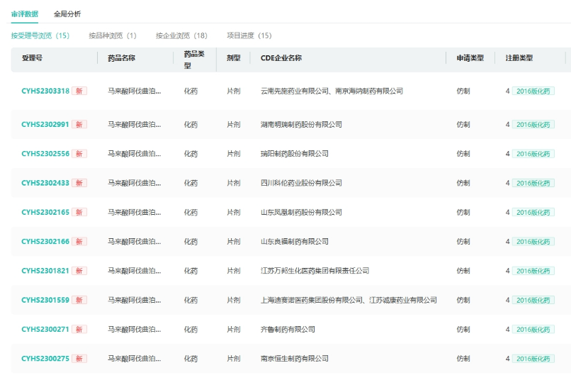 今日,据CDE官网最新公示,云南先施药业的4类仿制化药马来酸阿伐曲泊帕片的上市申请获受理。目前,已有18家药企加入该品种的首仿争夺战。