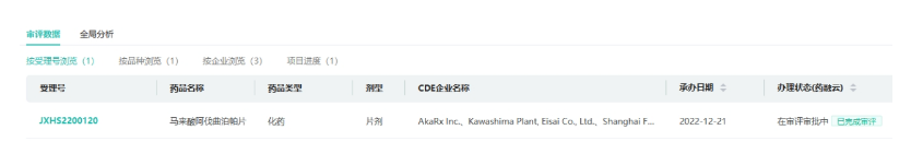 截图来源:药融云中国药品审评数据库