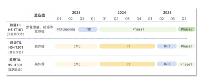 华赛伯曼致力于做全球创新性、领先性的抗实体肿瘤TIL细胞药物,企业经过四年多的发展,通过自主研发,搭建了PowerTexp®高效TIL生产工艺平台,TMExpT®肿瘤微环境调控表达平台,为第二代基因改造的超级TIL及通用T细胞产品提供强有力的研发支撑。目前公司的管线已经布局有自体天然加强TIL产品HS-IT101和基因改造超级TIL产品HS-IT201、HS-IT301。超级TIL产品将慢病毒技术和基因逻辑调控方法相结合,精准调控插入TIL中目的基因的表达,已经在体外及类器官中显现出良好的效果,也即将进入IIT临床研究。