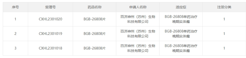 近日,CDE官网公示,百济神州申报的1类新药BGB-26808片获批临床(默示许可),拟定适应症为单药治疗晚期实体瘤。
