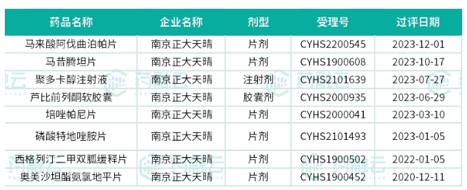 此外,南京正大天晴还提交了沙库巴曲缬沙坦钠片、罗沙司他胶囊、达格列净二甲双胍缓释片等18个品种的仿制申请,均在审评审批中。