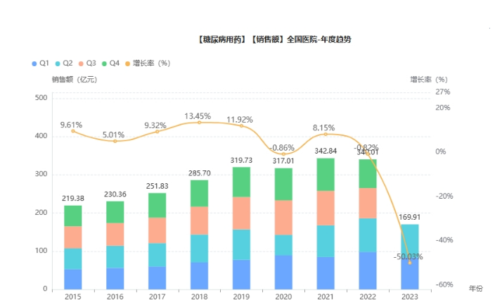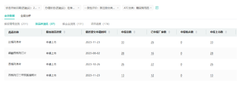 据药融云数据统计,今年以来,糖尿病用药(化学或生物药)已有60品种(161个品规)获批上市;糖尿病仿制药有37品种(231品规)提交了仿制申请,均在审评审批中,市场竞争十分激烈。