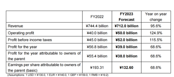 基于以上财务报告,以下是卫材对2023年度的财政预测,虽然预期收入有所下降,但是预期的营业利润与上年相比还是有所增长,可见卫材对新的一年还是充满乐观。