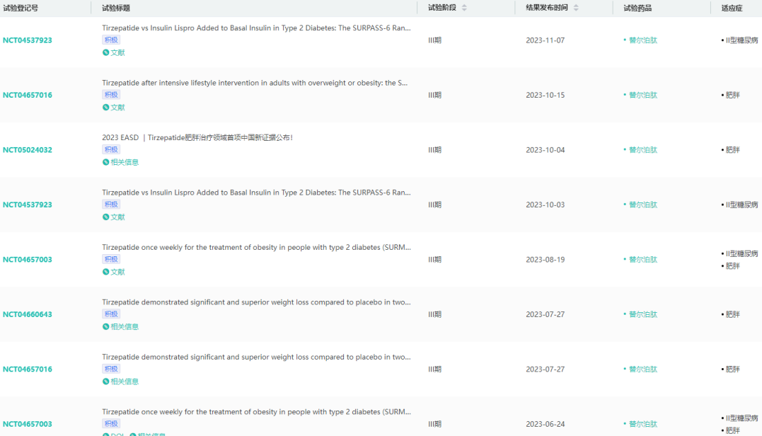 tirzepatide临床试验结果查询