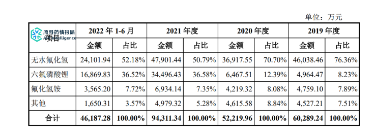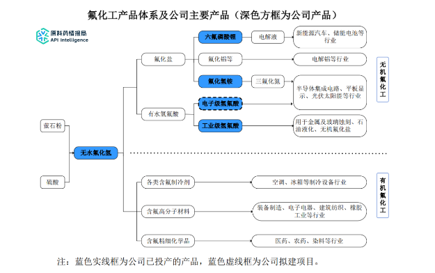 公司自成立以来一直致力于高纯度氟化工产品的研发、生产和销售业务。目前,主要产品包括无水氟化氢和各类高纯度无机氟化盐,如六氟磷酸锂和氟化氢铵。
