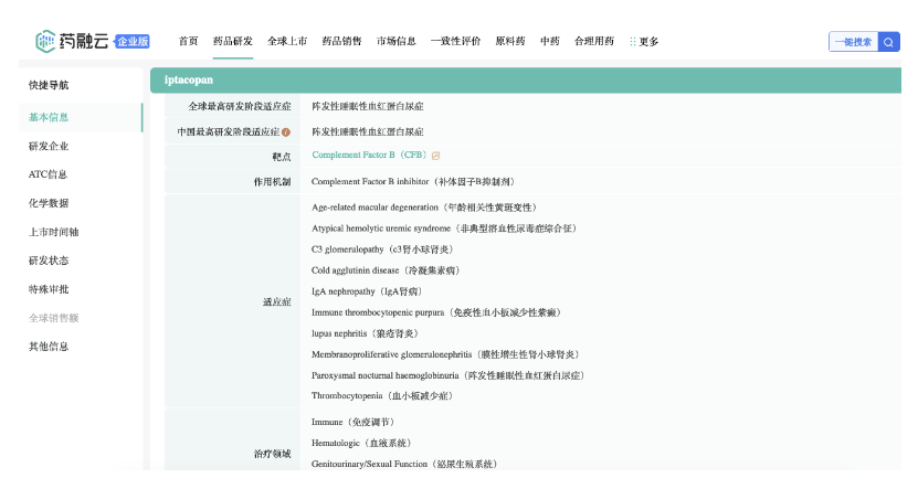 截图来源:药融云全球药物研发数据库