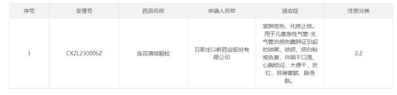 近日,据CDE官网最新公示,石家庄以岭药业申报的2.2类中药新药连花清咳颗粒获得临床试验默示许可。该品种基于公司独家创新中药“连花清咳片”研发的中药颗粒剂。目前国内仅石家庄以岭药业拥有连花清咳片生产批文,该产品已通过谈判纳入全国医保目录,据药融云数据统计,中成药在全国院内销售市场峰值超1300亿。