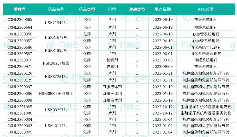 2023年至今海思科申报并获批临床品种