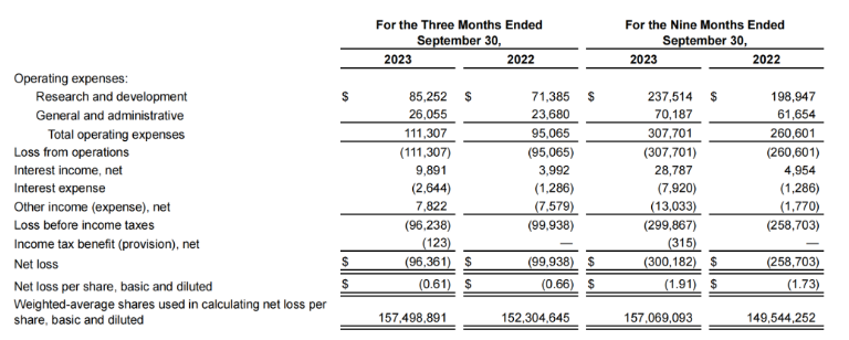 截至2023年9月30日,公司前三个季度研发费用为2.375亿美元,研发费用总额包括680万美元和2030万美元的股权薪酬费用,与上一年相比研发费用的增加主要是由于emraclidine和tavapadon项目的持续推进,以及人员成本的增加,包括基于股权的薪酬。2023年前三个季度的一般和管理费用为7020万美元,包括1030万美元和2390万美元的股权薪酬费用,与上年同期相比,一般和行政费用的增加主要是由于人事成本增加,包括基于股权的薪酬,部分被与专业费用相关的支出减少所抵消。