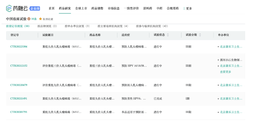 截图来源:药融云中国临床试验数据库