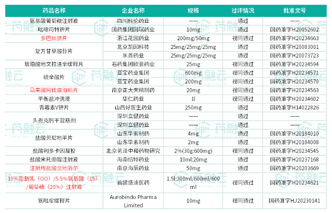 其中多巴丝肼片、马来酸阿伐曲泊帕片、注射用盐酸兰地洛尔、10%脂肪乳(OO)/5.5%氨基酸(15)/葡萄糖(20%)注射液4大品种迎来首仿,详见下方表格。
