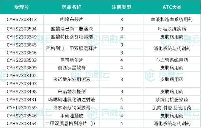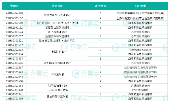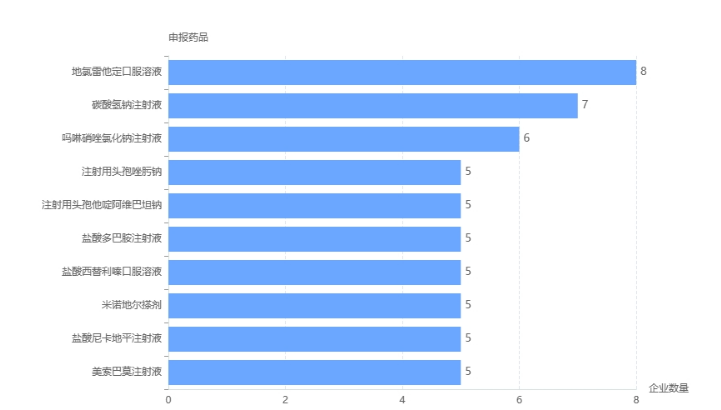 从受理品种来看,地氯雷他定口服溶液、碳酸氢钠注射液、吗咻硝坐氯化钠注射液品种的相关企业数最多。