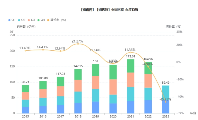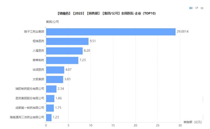 2023年镇痛药院内市场,扬子江断层C位,恒瑞紧随其后