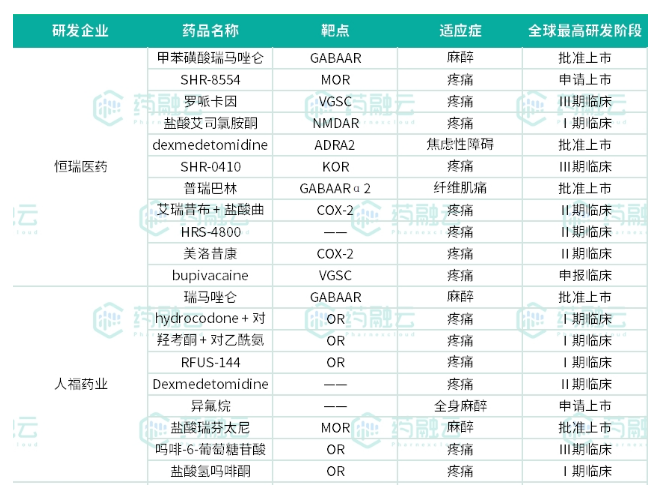 麻醉镇痛国内创新药研发,恒瑞、人福抢得先机