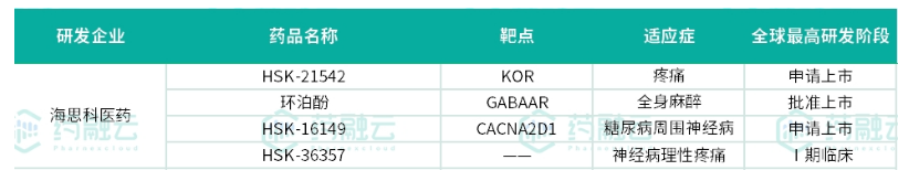 除了这两大巨头,海思科在麻醉镇痛领域也展现出强大的潜力,坐拥4款在研新药,其首个1类新药环泊酚在2023年上半年销售收入达到约3.4亿元,成为麻醉领域的耀眼新星。此外,海思科研发的HSK36357已进入Ⅰ期临床研究阶段。