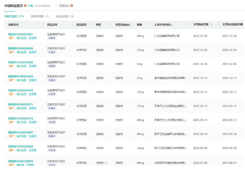 近日,据NMPA官网公示,仁合益康提交的3类仿制化药注射用尼可地尔获批并视同通过一致性评价。目前该品种有超30家药企以新注册分类申报上市,竞争愈发激烈。
