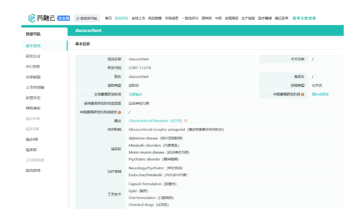 药融云数据库显示,Corcept Therapeutics是一家商业化阶段的制药公司,致力于发现和开发通过调节皮质醇的作用来治疗严重内分泌、肿瘤、代谢和神经系统疾病的药物。该公司在选择性糖皮质激素受体(GR)拮抗剂的研究和开发领域处于领导地位。Corcept还与众多基础科学家和临床研究人员合作,寻找更好的方法来改善患者的生活,共有30多项研究正在进行中,以调查GR拮抗剂治疗由皮质醇失调引起的严重疾病的潜在益处。
