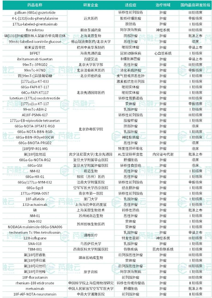 国内在研的核药新药产品图片