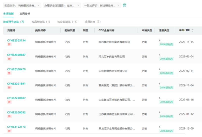 截图来源:药融云中国药品审评数据库