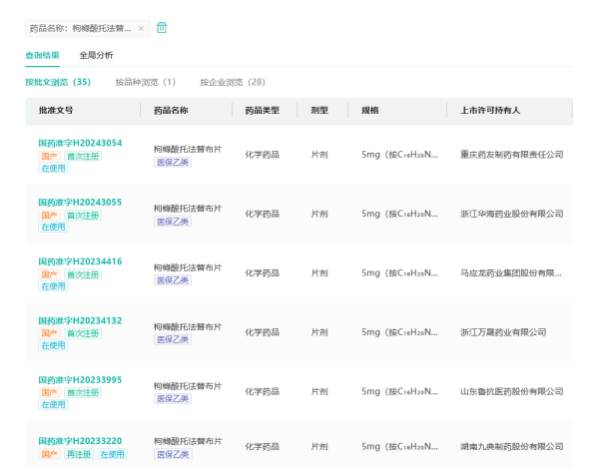 截图来源:药融云中国药品批文数据库