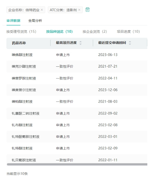 据药融云数据统计,倍特药业目前有10款造影剂,其中碘克沙醇注射液、碘帕醇注射液、碘普罗胺注射液、钆贝葡胺注射液4款获批并过评,此外,还有碘佛醇注射液、碘美普尔注射液、钆塞酸二钠注射液、钆布醇注射液、钆特酸葡胺注射液、钆特醇注射液6款提交了仿制申请,均在审评审批中。