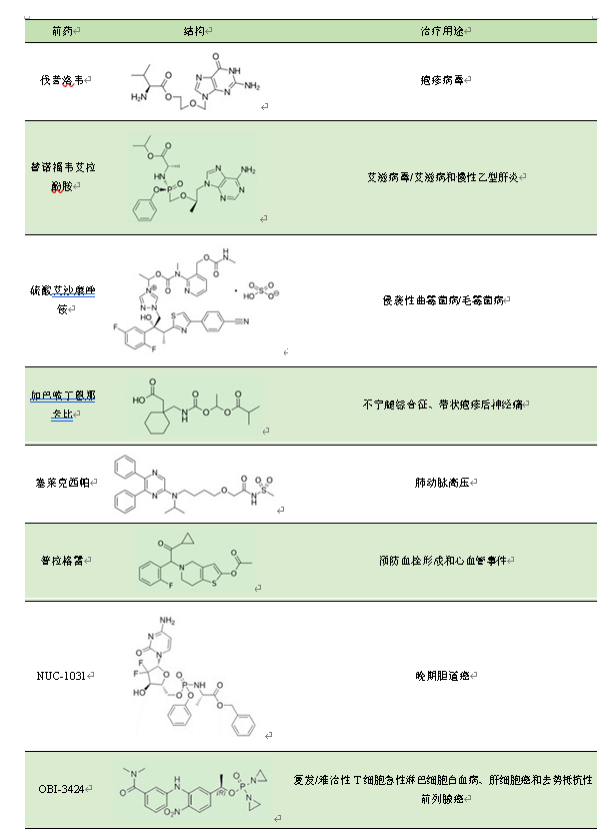 表1前药结构及其治疗用途。[1]