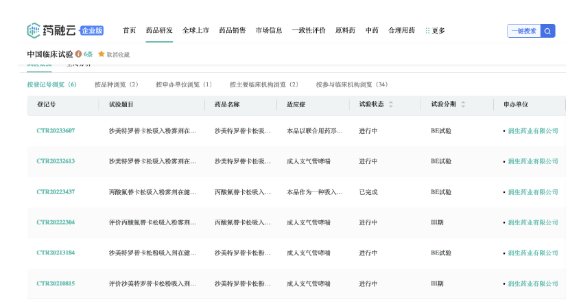 截图来源:药融云中国临床实验数据库