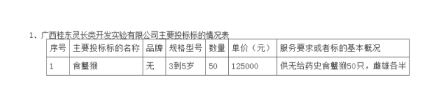 到了2023年9月18日,食蟹猴的中标价格降至14万元/只。