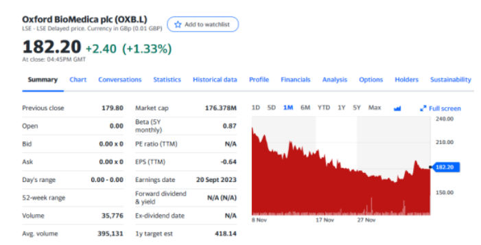 Oxford Biomedica目前市值1.76亿英镑,在手现金及等价物1.3亿英镑。