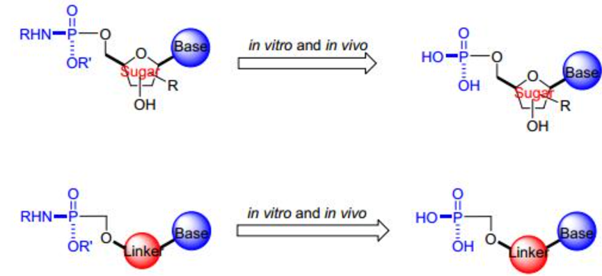 图1 磷酰胺酯前药转化为磷酸前药[3]