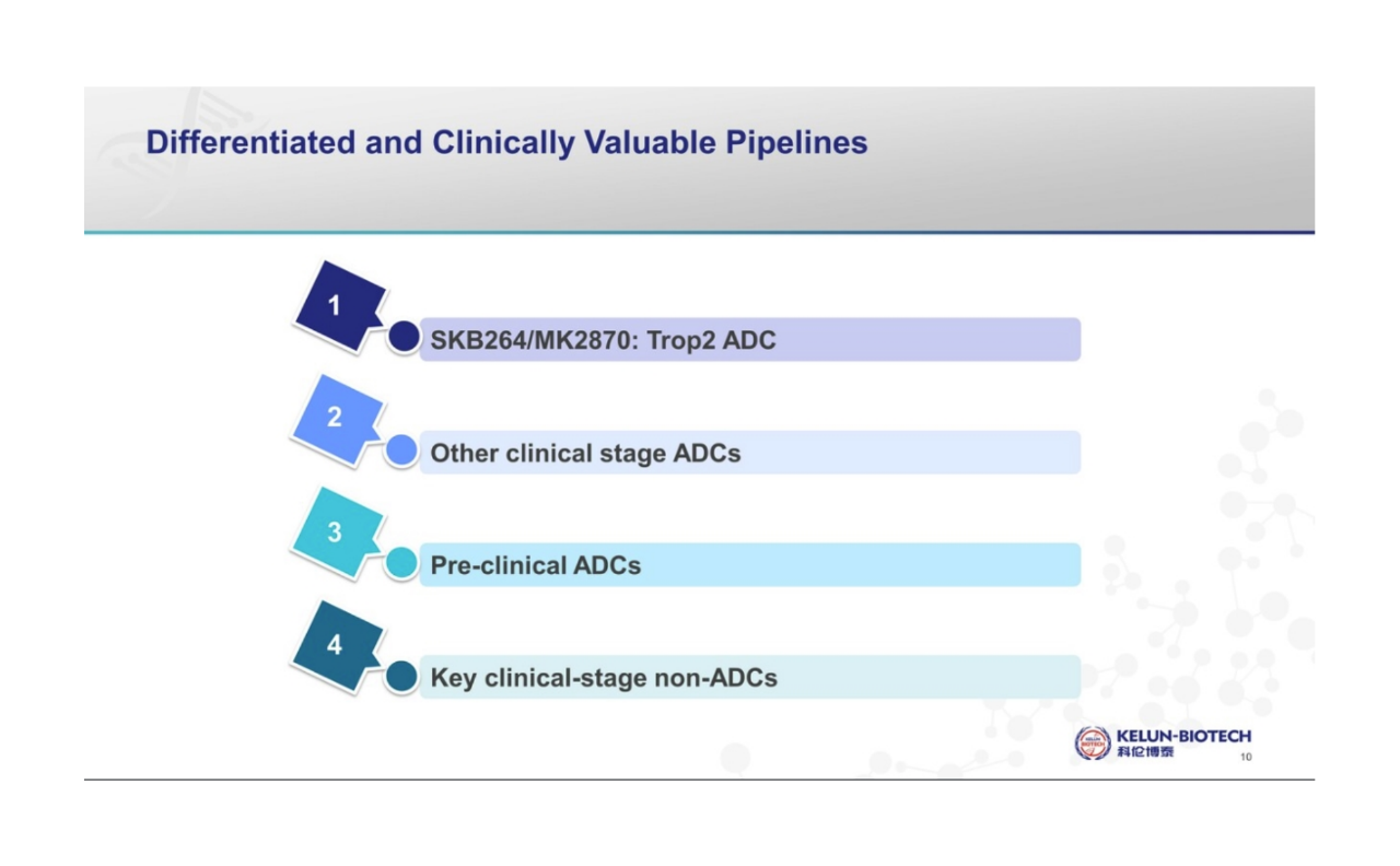 科伦博泰是抗体偶联药物(ADC)的先行者及领先开发企业之一。成立于2016年,致力于肿瘤学、免疫学及其它治疗领域的创新药物研发、制造及商业化。此外,公司有SKB264和A166两款ADC药物作为核心产品,并拥有ADC、大分子及小分子3个核心技术平台。