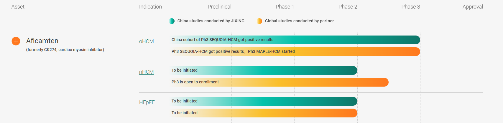 2020年7月,箕星药业引进Aficamten的大中华区权益,在中国处于三期临床阶段。