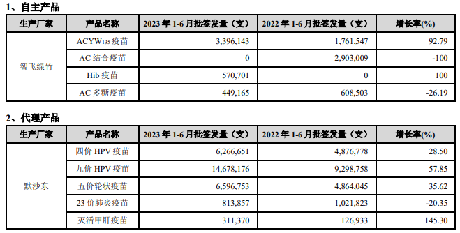 上半年在售疫苗产品的批签发情况如下: