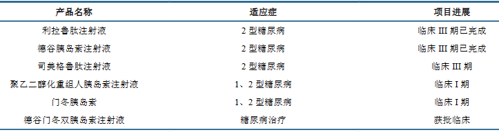 布局 GLP-1 靶点,司美格鲁肽处于临床 III 期。GLP-1 是非胰岛素类降糖药开发的热门靶点之一,兼具减肥、降糖和心血管获益的功效。目前国内除宸安生物外,联邦制药、华东医药、丽珠药业、齐鲁制药和惠升生物处于临床 III 期阶段。预计随着 2026 年诺和诺德司美格鲁肽专利到期,国产品种有望陆续完成 III 期临床并获批上市。