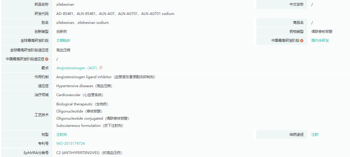 Zilebesiran药物基本信息