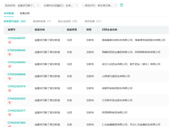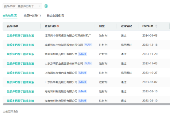 目前盐酸多巴酚丁胺注射液有成都苑东生物制药、齐鲁制药、湖南科伦制药等37家企业拥有生产批文,其中海南普利制药、成都苑东生物制药、山东新华制药、江苏吴中医药集团等6家企业过评。