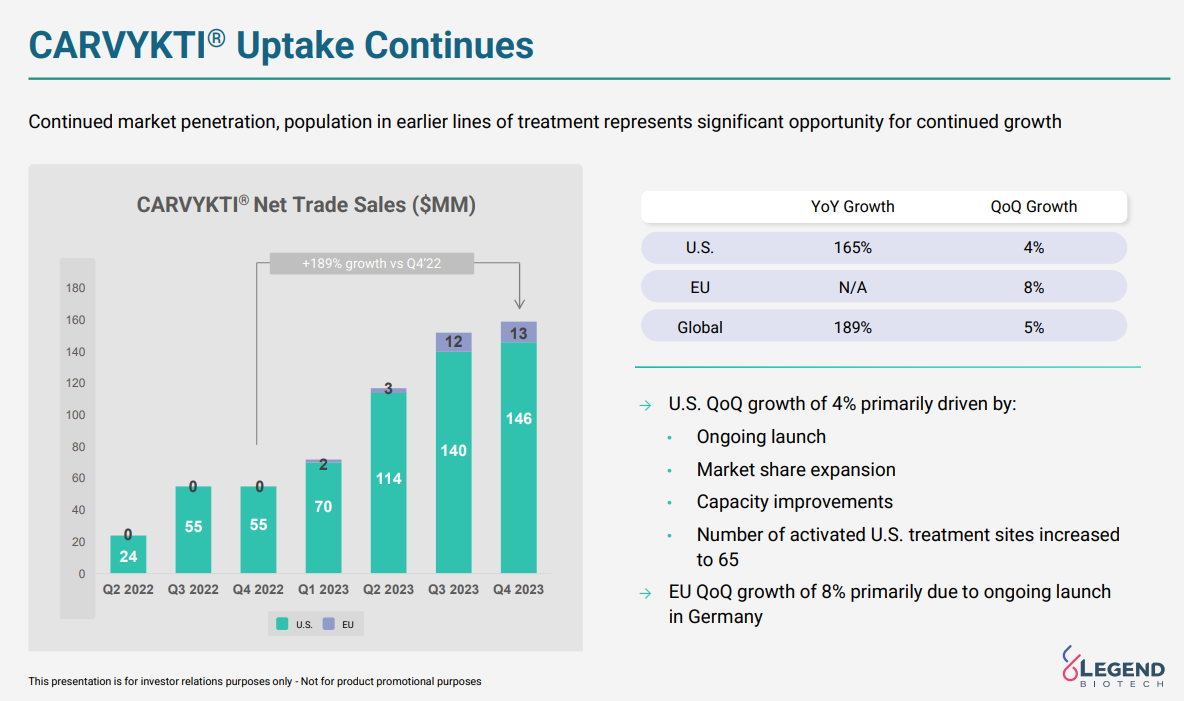 近日,传奇生物(NASDAQ:LEGN)在美国新泽西州萨默塞特发布了2023年第四季度和全年的未经审计财务业绩以及公司主要亮点。